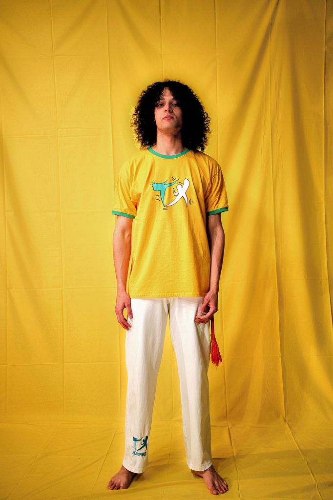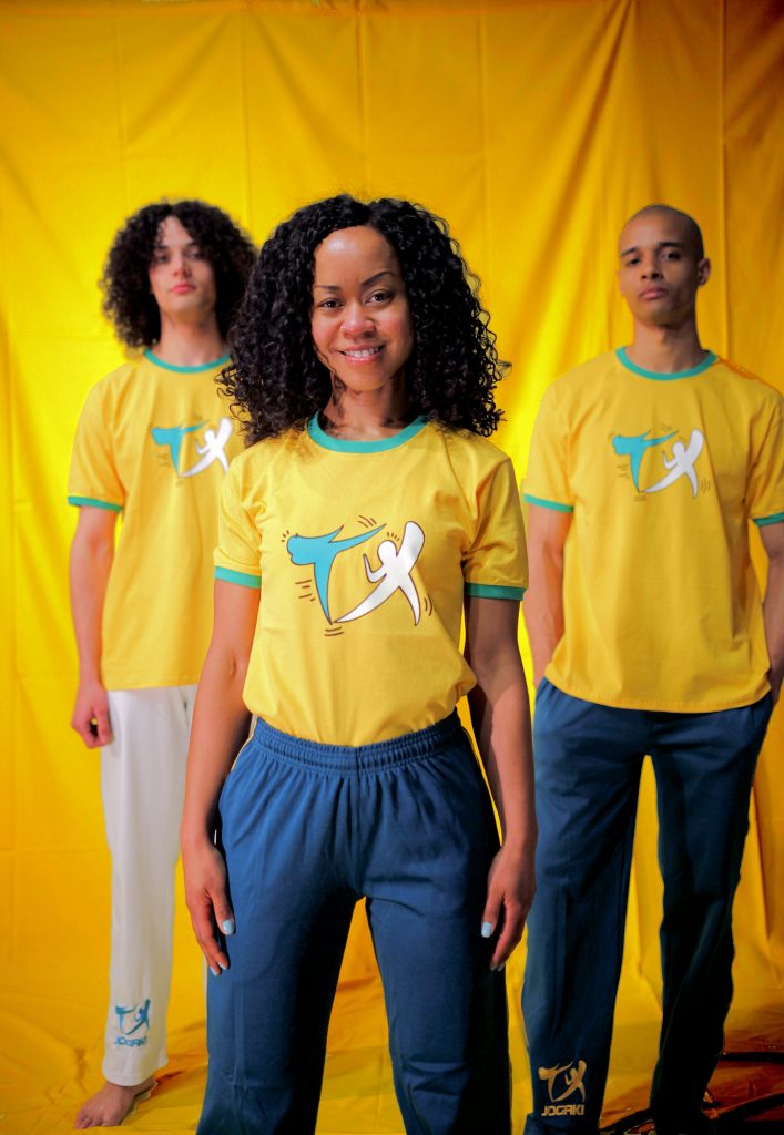 avec le nouveau logo Jogaki sérigraphié en vert et jaune, rappelant les couleurs du pays d’origine de la Capoeira : le Brésil. Deux couleurs au choix : le blanc, ou le jaune d’or Brasil avec contraste vert au col et manches, rappelant le maillot du Brésil !