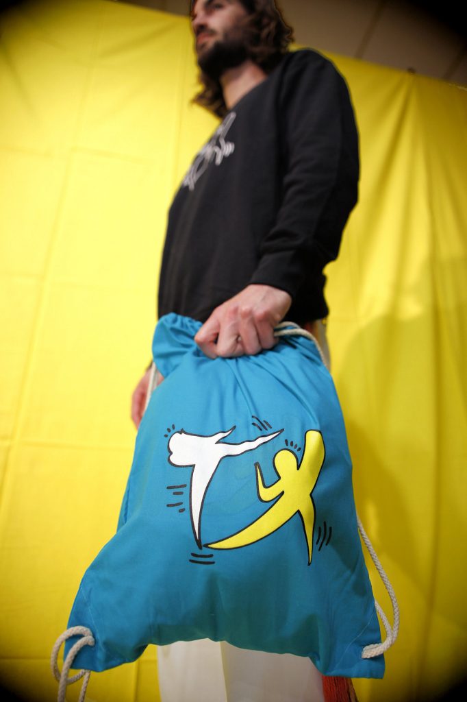 ⚪🟡🟢🔵⚫️ – Le gymbag 100% coton, parfait pour transporter vos uniformes de Capoeira. disponible en 5 couleurs : blanc naturel, noir, jaune, vert ou bleu canard. avec sérigraphie du nouveau logo de Jogaki en 3 couleurs.